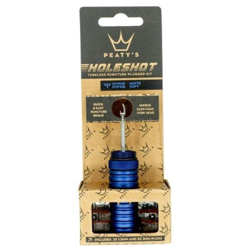 Le kit de conversion tubeless Holeshot est le seul outil nécessaire pour convertir un pneu en tubeless ou remplacer les bouchons de pneus d’origine.