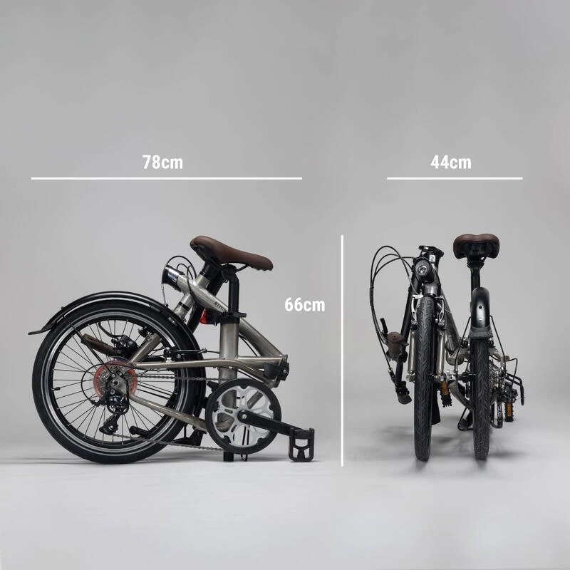 Le système de pliage latéral très simple par levier permet un faible encombrement : à la maison, au bureau, dans un coffre de voiture, camping-car… votre vélo sait se faire oublier.